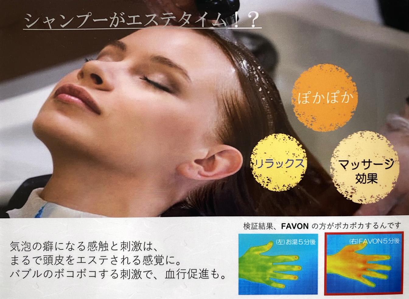 最新の技術と最高のサービスを提供することに全力を尽くしています。特に「FAVON(ファボン)」による究極のナチュラルトリートメントで、洗うだけで理想の髪質を実現します。超微細気泡が毛根の細部まで入り込み、細胞を刺激し、アミノバランス・アクアバランスを整えます。この革新的な技術で、お客様の髪に新たな美しさをもたらします。是非、皆様のご来店を心よりお待ちしております。
